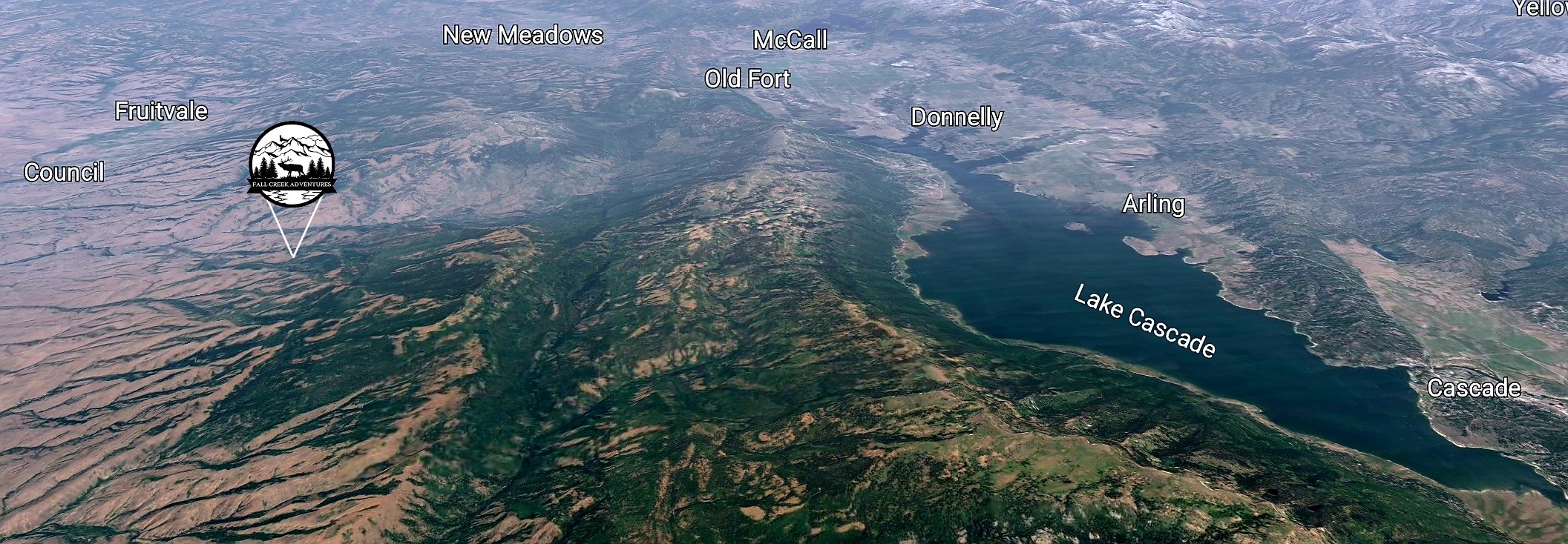 However, Fall Creek Adventures also includes 3 access routes to the Cascade side. The numbers shown by Google are driving a car on a dirt road, which obviously is going to be slow. Taking your SXS over the mountain is going to make things more fun and much faster (probably half the time). If you want to drive your car out to dinner or to go shopping or the like, going through New Meadows or using MiddleFork road is going to be your best bets.